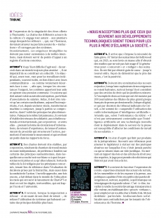 Trois ans après le lancement de ChatGPT, l’ambiance n’est plus la même. Si les premiers temps furent à l’enthousiasme, au fil des mois l’impression générale s’est modifiée par sauts successifs. Un air d’opposition – jusque de fronde – se met à planer. Au point de voir des per sonnes et des groupes souhaiter exercer leur droit à se prononcer, à ne plus être mis face au fait accompli, pour être parties prenantes des prises de décision qui les concernent. Pour y parvenir, il convient de mettre, premièrement, sur la table une série d’exigences revêtant une valeur universelle, parce que reposant sur des droits humains tenus pour inaliénables et à propos desquels on ne transige pas.