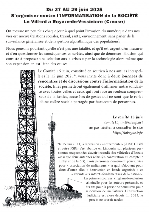 À l'occasion des rencontres organisées par le collectif du 15 juin, Fabien Lebrun, auteur de Barbarie numérique, et Génération Lumière discuteront des coûts humains de l’extractivisme et de la situation en République Démocratique du Congo à partir de 14h30 au Villard (23460 Royère-de-Vassivière).