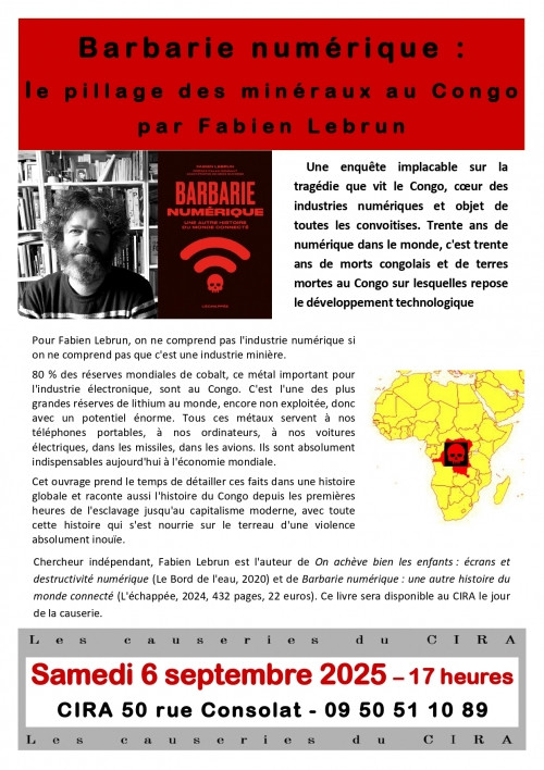Fabien Lebrun présentera son livre Barbarie numérique. Une autre histoire du monde connecté à partir de 17h au CIRA (50 rue Consolat, 13001 Marseille).