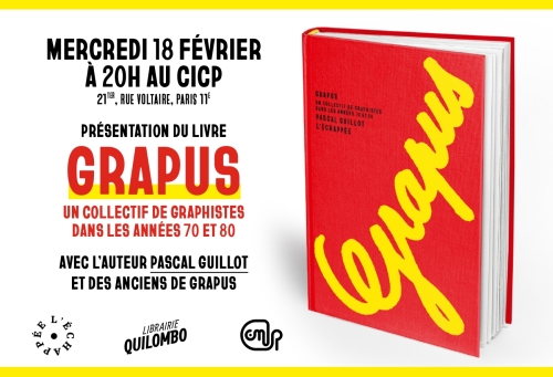 Pascal Guillot présentera Grapus. Un collectif de graphistes dans les années 70 et 80 avec des anciens de Grapus à partir de 20h au CICP (21 ter rue Voltaire, 75011 Paris).