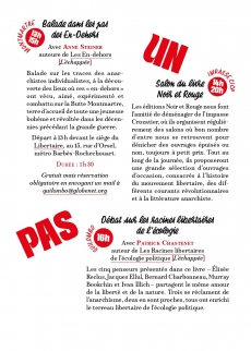 Les éditions Noir et Rouge nous font l’amitié de déménager de l’impasse Crozatier, où ils organisent régulièrement des salons où bon nombre d’entre nous se retrouvent pour dénicher des ouvrages épuisés ou non, à petit prix toujours. Tout au long de la journée, ils proposeront une grande sélection d’ouvrages d’occasion, consacrés à l’histoire du mouvement libertaires, des différents courants révolutionnaires et à la littérature anarchiste.